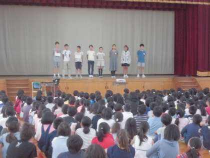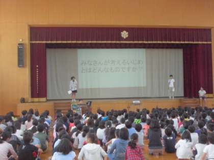 続いて6年生の児童が「いじめ防止」について全校児童に働きかけました。