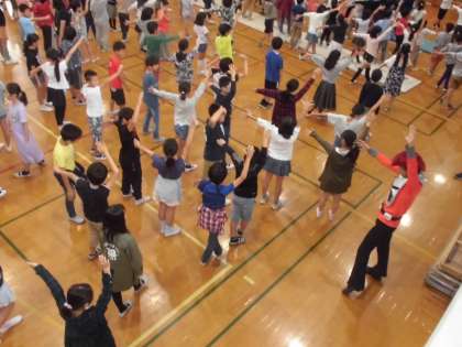ミュージカル終了後はワークショップを開いて,劇団の方が子ども達にダンスレッスンをしてくださいました。子ども達は楽しく踊っていました。楽しい2時間はあっという間に終了しました。