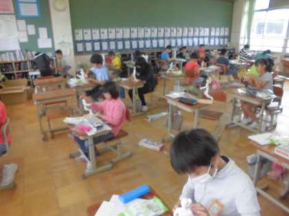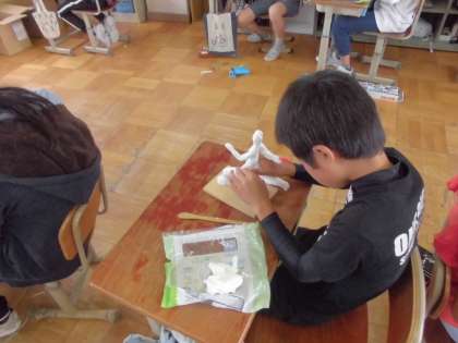 「12年後のわたし」の学習をしています。子ども達は針金で作った芯に紙粘土で肉付けをしました。12年後の自分をイメージして作品作りをしています。