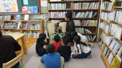 図書室では高学年が下級生に絵本や紙芝居を読み聞かせしてあげていました。高学年が下級生をしっかりリードしてあげていて,頼もしい限りです。