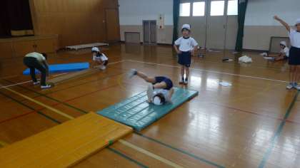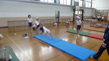 マットの学習も今日が最後の学習でした。自分ができるようになりたいと思う技に一生懸命挑戦していました。学習の最後には振り返りです。来年4年生で挑戦したいという技がもう決まっているようです。