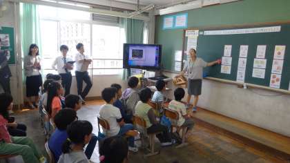 本校では外国語活動の研究を進めていますが, 富山県魚津市の教育委員会の方から視察に来られました。どのように,外国語活動を進めているのか説明するとともに,3年生の授業を実際に参観していただきました。