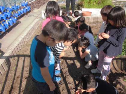 京都山城人権ネットワーク協議会の方々のご協力で,始めに絵本の読み聞かせをしていただき,続いて外に出て花壇やプランターに球根を植えました。しっかりお世話をして大切に育てていきたいと思います。