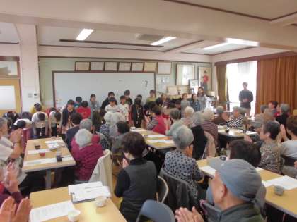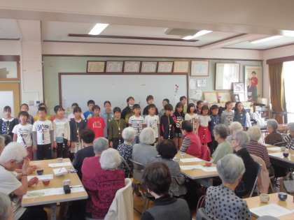 地域のお年寄りの方々がお集まりになる「健康すこやかサロン」に5年生の子ども達が参加しました。リコーダーと歌を披露しました。お集まりになられたお年寄りの方々から温かな拍手を頂きました。
