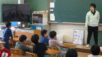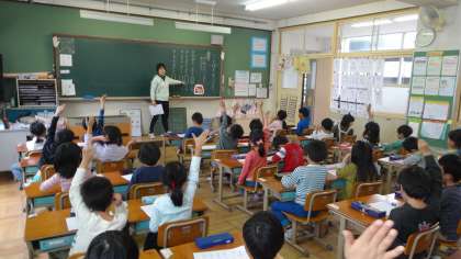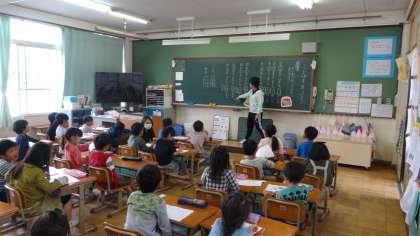 教育実習の先生と国語の学習です。クイズ形式で問題を解きながら,「〜がいる。」「〜がある。」の使い方の違いについて考えました。