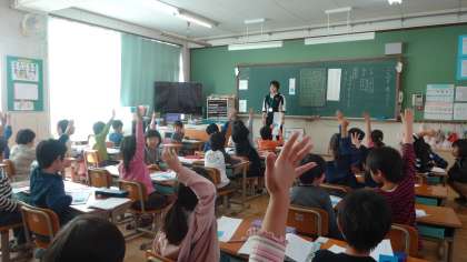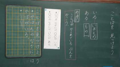 「ことばを見つけよう」の学習です。今日は自分たちで文を書いて,クイズ形式で発表し合いました。なかなかにユニークなクイズも出題されて,みんなで楽しく学習することができました。