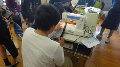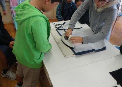 ミシンを使って作成してきたエプロンが,いよいよ完成です。それぞれいいのができました。