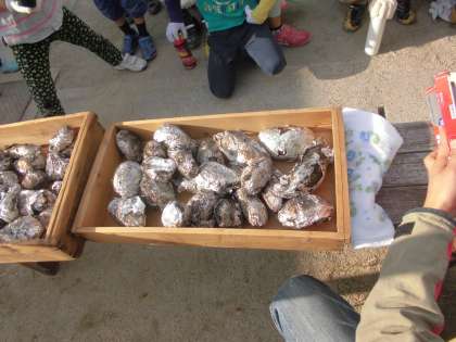 地域の方が火の世話をしていただき焼き芋が出来上がりました。子ども達はどのお芋を食べようか慎重に選んでいました。