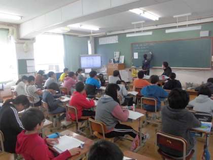 立体の体積の求め方について学習しました。1組は円柱の体積の求め方を,2組は三角柱の体積の求め方について考えました。