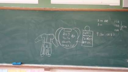 明日6日になかよし運動会の事前交流会に出かけるので,先生と一緒に行程や持ち物を確認しました。15日(木)がなかよし運動会の本番です。明日,いい交流ができるといいですね。