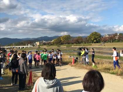 大文字駅伝支部予選会が加茂川河川敷で行われました。まずはリザーブの選手たちのレースです。自己記録更新を目指して,みんな力強い走りでした