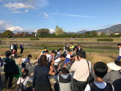 予選会がスタートしました。男女4人ずつ,計8人でタスキをつないでいきます。