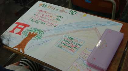 下鴨地域の歴史について調べてきたことを,各自でポスターにまとめました。発表に向けて友だちを相手に練習しました。