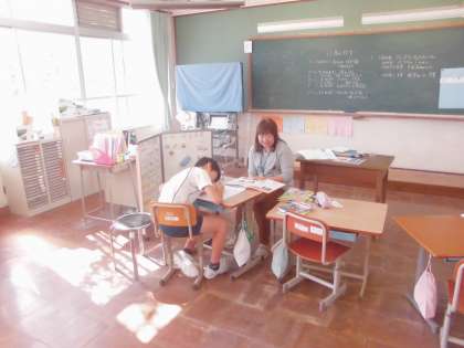 2・4年児童が交流学級へ出かけていたので,6年生児童がなずな学級の教室で社会科の学習をしました。図鑑を使って教科書に出ている人物について調べました。