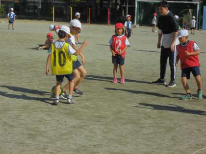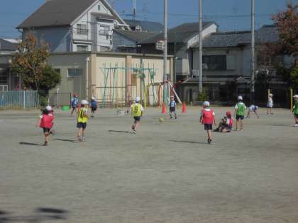 秋晴れのいい天気のもと,ボールけりゲームをしました。子ども達はしっかり動き回ってゴールを目指して頑張りました。