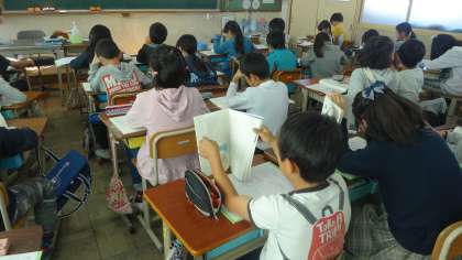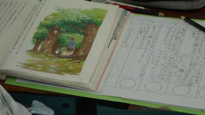 「プラタナスの木」の学習です。各自で読み取り考えたことは,ワークシートに書きまとめていきます。集中して学習していました。