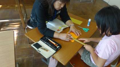 「しかけカードの作り方」の学習をしています。今日は,教科書で紹介されているしかけカードを実際に作ってみました。