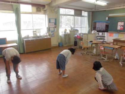 英語の歌で体の言い方に慣れ親しみました。子ども達は歌にあわせて元気よく踊っていました。