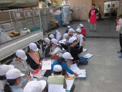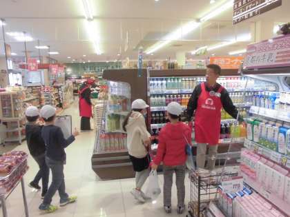 社会科の学習で,お店の見学に行きました。買い物の時には見ることができない店の裏側の様子や,開店前の準備の様子を見学させていただきました