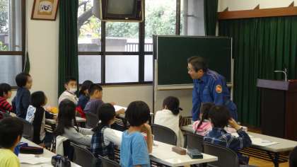 11月13日 4年 社会 消防団の方々との学習 その1