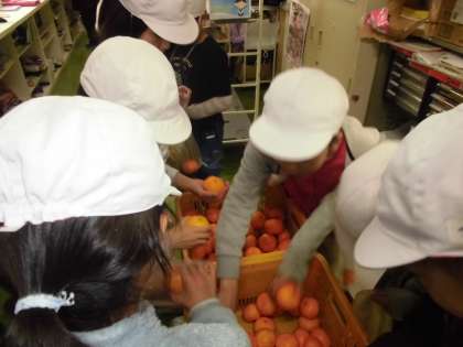最後には子ども達の質問に店長さんが詳しく答えて頂きました。帰る時にはお土産としてみかんも頂きました。お忙しい中,店長さんをはじめ多くの店員さんのご協力を頂き,ありがとうございました。