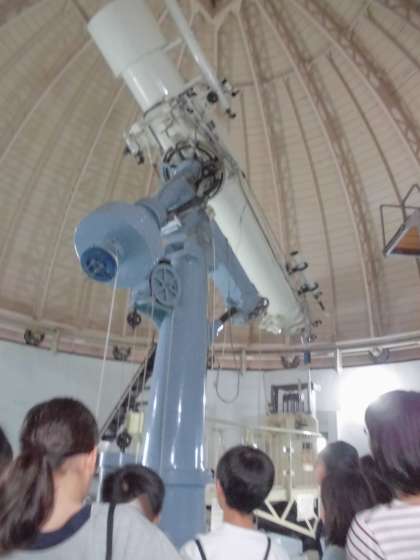 山科区にある京都大学花山天文台に見学に行きました。本館には直径9mのドームがあり,その中には国内で3番目の大きさの口径をもつ屈折望遠鏡がありました。天文台の先生の説明ではこの望遠鏡は夜の星の観察に使われるものなので,子ども達が実際に観察することはありませんでしたが,大きな望遠鏡に子ども達は驚いていました。