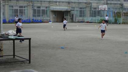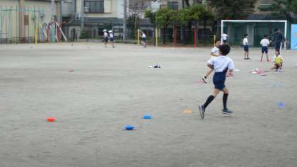 体育でジョギングに取り組んでいる5年生。今日は少し冷え込む一日となりましたが,汗をかいて頑張っていました。