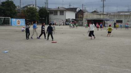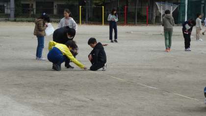 平均を学習していますが,今日は自分の歩幅を平均を使って測定しました。運動場に出てきて,メジャーを使ってグループで協力して測定しました。