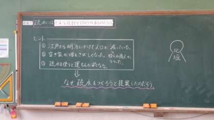琵琶湖疏水について学習している4年生。11月27日には社会見学にも出かけます。今日は,なぜ疏水が作られたのか,当時の京都の様子も思い浮かべながら,みんなで考えました。