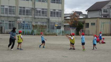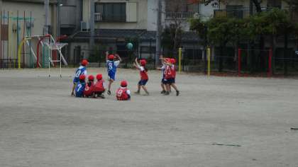 パスゲームの学習が始まりました。まだまだパスがうまくつながりませんが,ゴールを目指してみんなで攻めようと頑張っています。