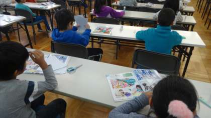 紙版画の学習に入りました。今日は,学年みんなで,どのように学習を進めていくのか確認しました。どんなことをしていくのか見通しが持てたようです。