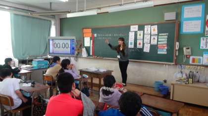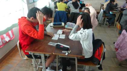 今日はALTの先生も一緒に学習です。曜日や教科について英語を使って表現しました。かるた取りゲームでは,ALTの先生の発する言葉を注意深く聞いて反応していました。