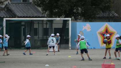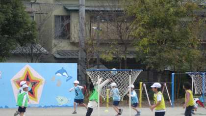 パスゲームの学習の様子です。今日はだいぶ冷え込む一日でしたが,寒さに負けず,みんな元気にプレーしていました。