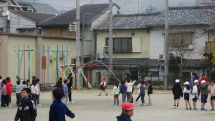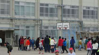 来週,運動委員会が主催する大なわ大会に向けて,各クラスで練習に取り組んでいます。中間休みにもたくさんのクラスが運動場に出てきて練習していました。