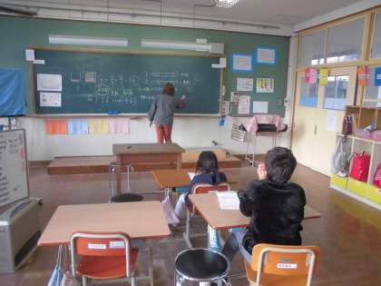 4年児童は交流学習に行っていたので,2年,6年の児童が学習をしました。それぞれの課題に取り組みました。6年生の児童は分数の学習をがんばっていました。