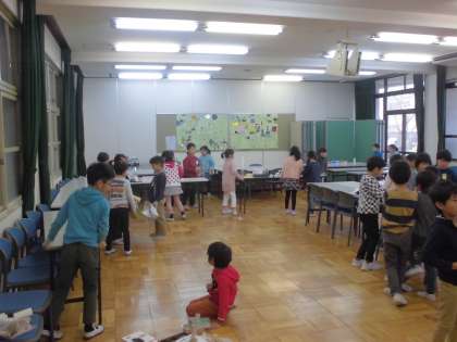 1年生を招待して「おもちゃパーティー」を開くために準備をしました。1年生に楽しんでもらえるように,各グループの場所を工夫したり,遊び方の説明カードの準備をしたりしました。