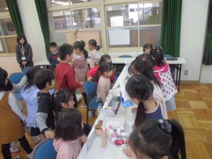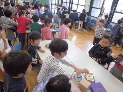 「おもちゃパーティー」を開きました。2年生の子ども達は今まで準備してきたおもちゃを1年生の子どもたちが楽しく遊べるようにしました。