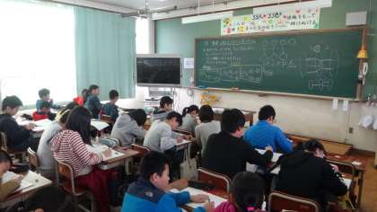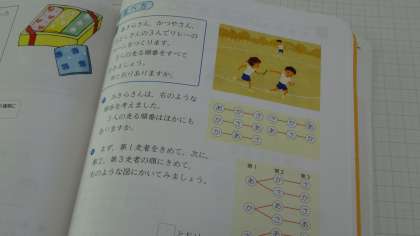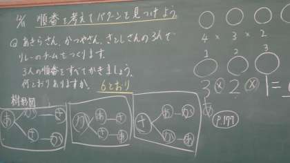 算数の学習の様子です。起こりうる場合を整理しながら調べていきます。図などもかきながら,集中して考えていました。