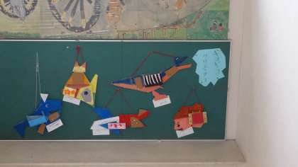 頑張って作ってきた作品が出来上がってきました。個人懇談会などでお越しの際はぜひ鑑賞してください。