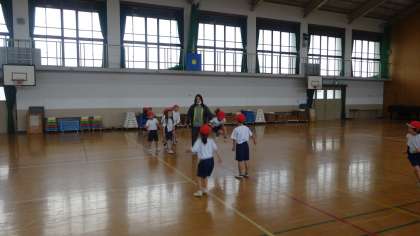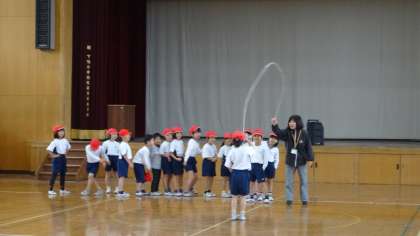 なわとびをしました。先生に回してもらいながら,リズムよく跳んでいきます。まだまだ難しいようですが,みんなで頑張っています。