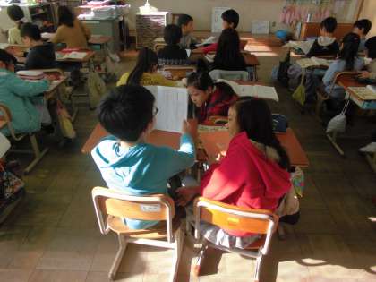 漢字の広場の学習をしました。教科書に出ている漢字を使って算数の問題を書きました。書いた文章は隣同士で交流しあいました。