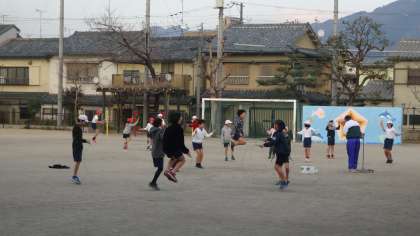 冬休み明け,部活動も再開です。運動場では陸上部が,寒さに負けずなわとびや短距離走などして体を動かしました。