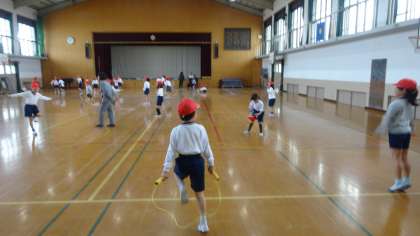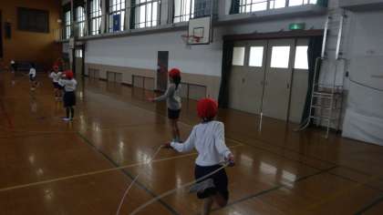 なわとびに挑戦です。寒さに負けないで,いろいろな跳び方にチャレンジしていました。