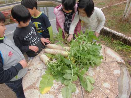 大きな大根が収穫できました。大根の隣で育てているブロッコリーはまだ大きくなっていないので,このままもう少し様子を見ます。