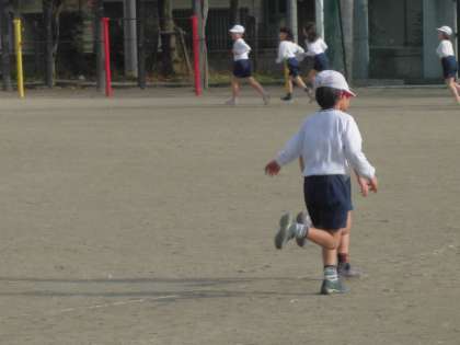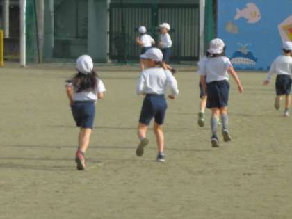 なわとびとゆっくりかけあしの学習をしています。子ども達は楽しい曲にあわせて自分のペースでゆっくり走りました。