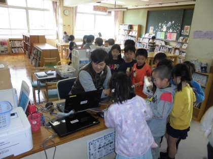 図書室で読書をしました。子ども達は冬休み前に借りた本を返却して,新たに本を借りました。借りた本を熱心によんでいました。