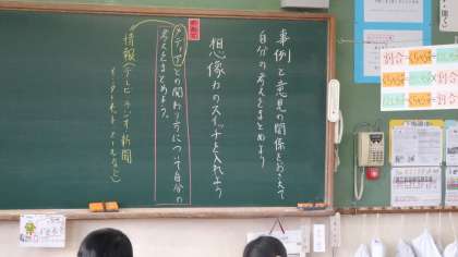 国語「想像力のスイッチを入れよう」の学習です。これまで読み進めてきましたが,今日は自分の考えを交流しました。