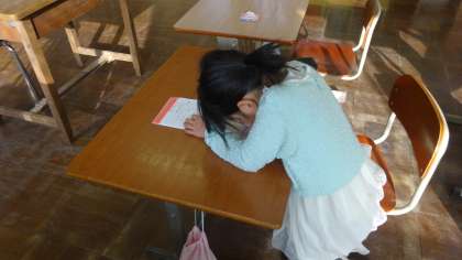2年生と6年生が残って,算数の課題にそれぞれ取り組みました。2年生はひき算,6年生は小数のかけ算の筆算の学習です。2人とも集中して取り組んでいました。