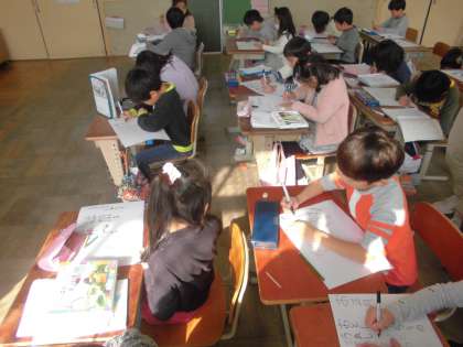 「詩を作ろう」の学習をしました。画用紙に作った詩の清書をしました。