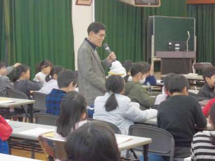 昔の道具や生活について学習しています。今日は地域の方にお越しいただいて昔の道具や生活の様子の写真を見せて頂きながら当時の様子についてお話をしていただきました。子ども達は戦争の時の話を聞いて,今の生活と大きく異なっていることに大変驚いていました。